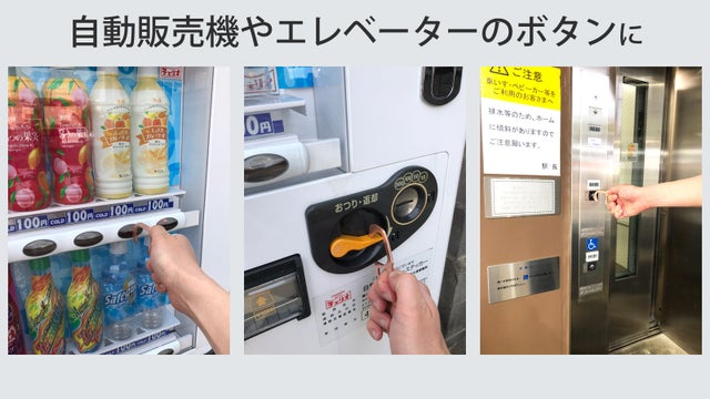 自動販売機やエレベーターなどのボタンを押す操作やレバーを引く操作もアシスト。