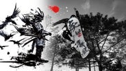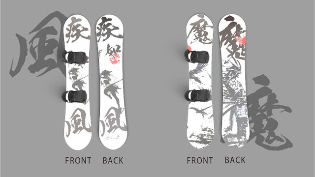書道とともに伝わった墨は文字を書くのと同時に絵にも使われています。中国から伝わった水墨画は日本でも発展し、現代では墨絵というジャンルも登場しています。そんな、伝統的な墨を使い躍動感のある大胆なタッチで描くというコンセプトで創造したスノーボード。