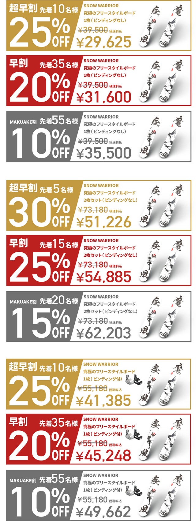 【MAKUAKE割15%OFF】スノーボード2枚セット(ビンディングなし)