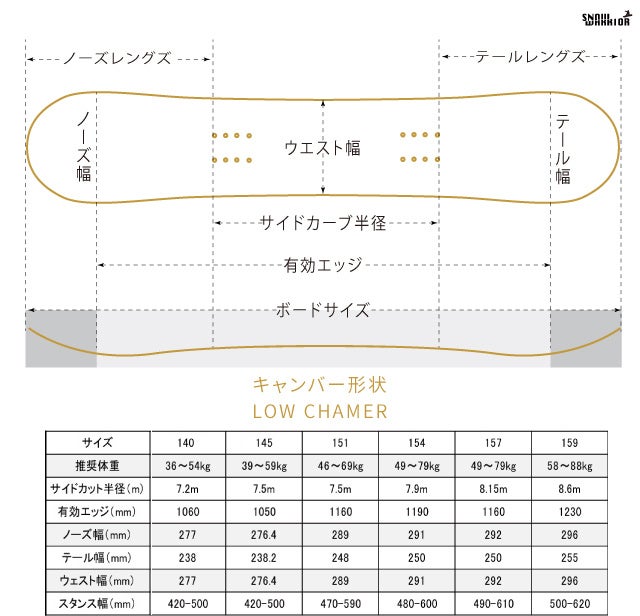 しかし、身長が高すぎたり、低すぎたりすると最適な長さの板が無いこともあります。SNOWWARRIORは全成長対応、各長さのスノーボードは全部揃いました。