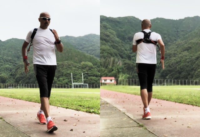 腕をリズムよく振りましょう。軽く振るだけでS.Obeltにより腕の軌道を修正され、姿勢がまっすぐなり、無駄な動作がなくなります。