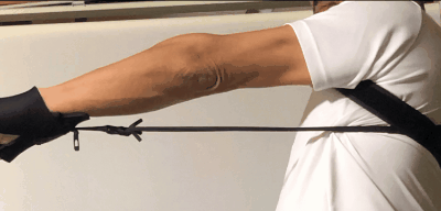 背中から手首を繋ぐチューブで、パンチング等の前後動作に負荷をかけることができます。
