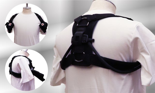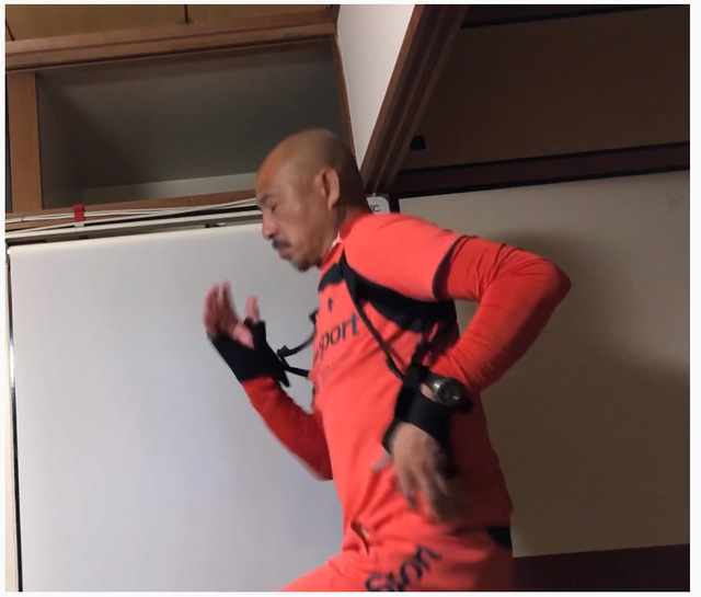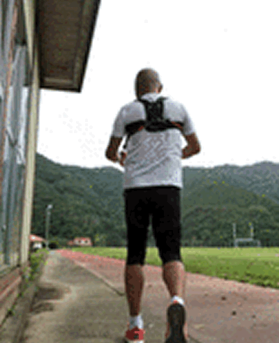 胸からのチューブで前へ、背中からチューブで後ろへ交互に引っ張られることで、腕振り動作が同じ形、同じ軌道で素早くなる。