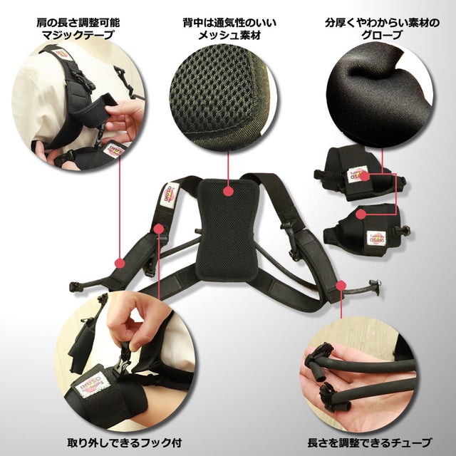 チューブでつなげる手袋と、収納袋がセットになっています。