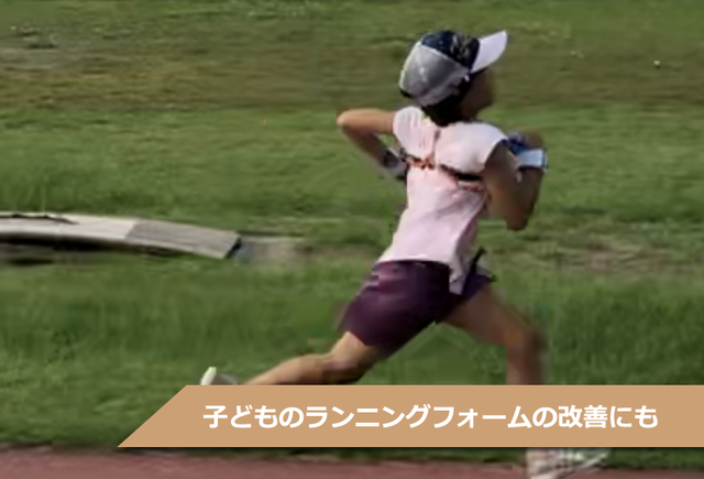 子供のランニングフォームや姿勢を正しい姿勢で固定し、力強い腕振りが出来る様に意識付けする事が可能で、且つ上半身の腕振り速度の上昇に伴い脚のスイングスピードも上がるの無理なく簡単にスピードトレーニングも行えます。