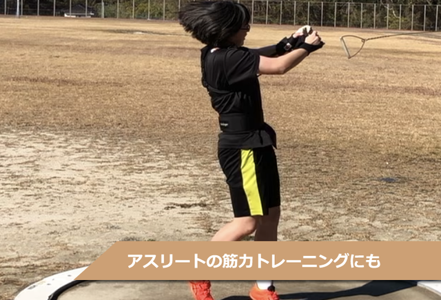 胸から手首に伸びるウォーキング、ランニング地の腕振り等の上下動作を的確なフォームへ修正します。 またチューブの弾性効果で反動を使い腕振り速度もUP!