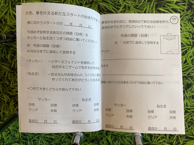 週に一回で構わないので、今週あなたが、達成したい目標をサッカーと私生活(プライベート)をそれぞれ一つ書いてください!