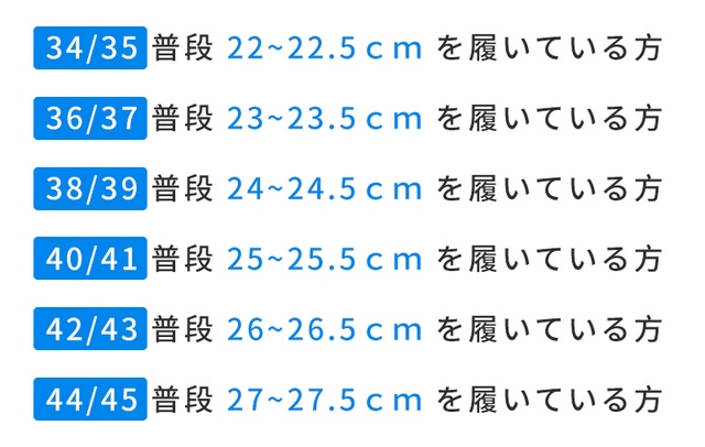 ご自身の足に合うサイズをお選びください。