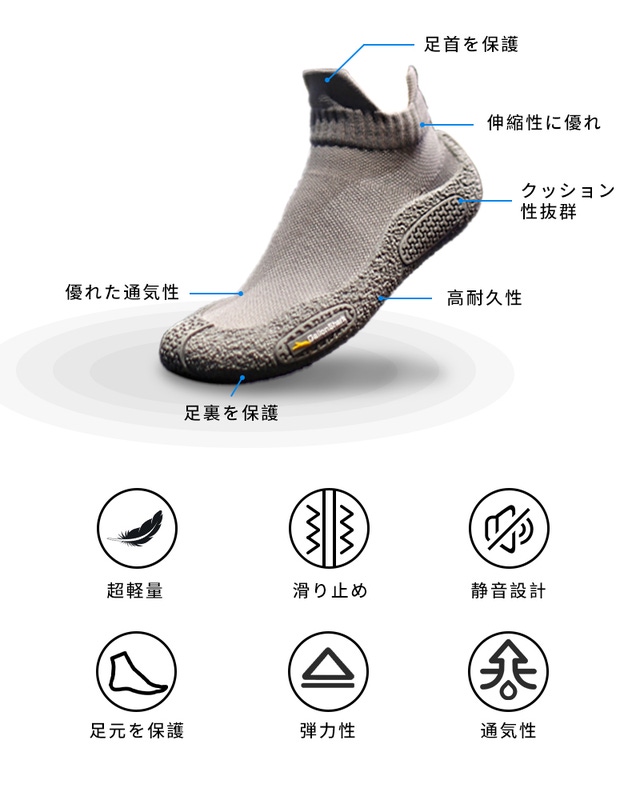 ◇靴下の快適さと高性能のグリップ力を兼ね備えたソックスシューズです。