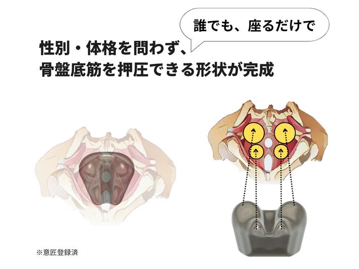 - 大西安季スポーツ医学博士が筑波大学で実施した骨盤底筋を“ほぐす”研究の成果をもとに開発。