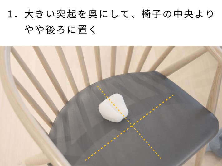 A. リビングの椅子、デスクチェア、床など、安定した座面であればどこでも使えます。しっかりとほぐすために硬めの座面を推奨していますが、痛みを強く感じる場合には、ソファなどの柔らかい座面の上で使っていただくことで強さの調整ができます。