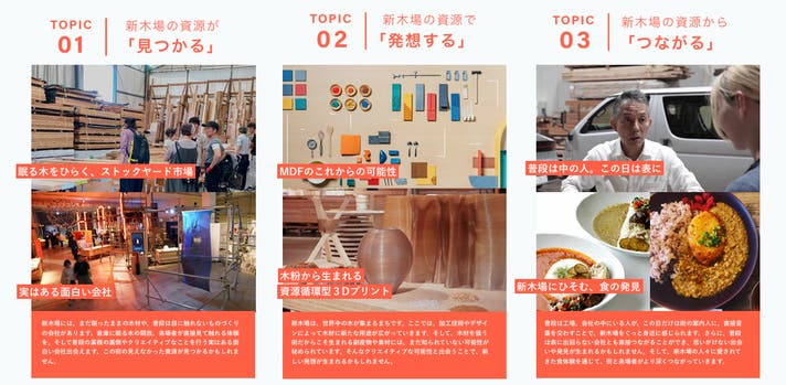新木場の資源が「見つかる」「発想する」「つながる」をテーマに町を体験でき、各企業が用意する様々な展示や物販、ワークショップ、食のコンテンツ等が揃うイベントとなっています。