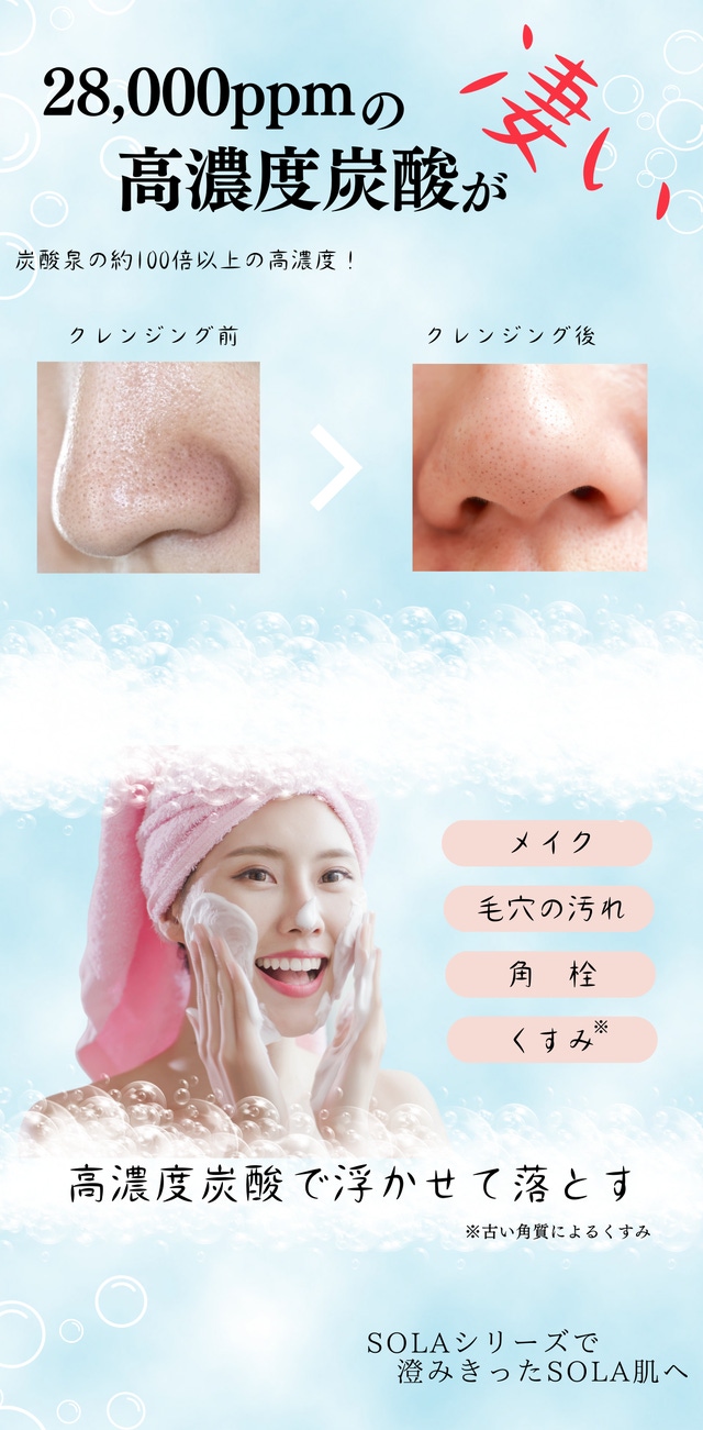 - 毛穴で変わる顔の印象 SOLAの高濃度炭酸で汚れやメイクを浮かせて自信の肌へ