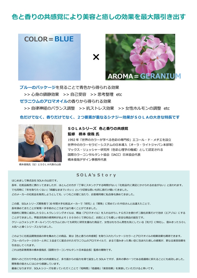 この度、SOLAシリーズ開発者の30年間某大手化粧品メーカーで「研究」と「開発」