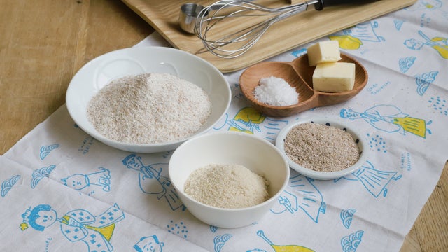 ・材料(小麦粉、ふすま、島砂糖、塩)※バターはご家庭でご用意ください。