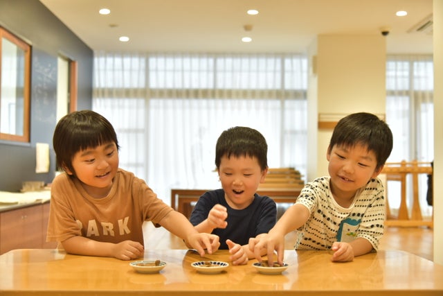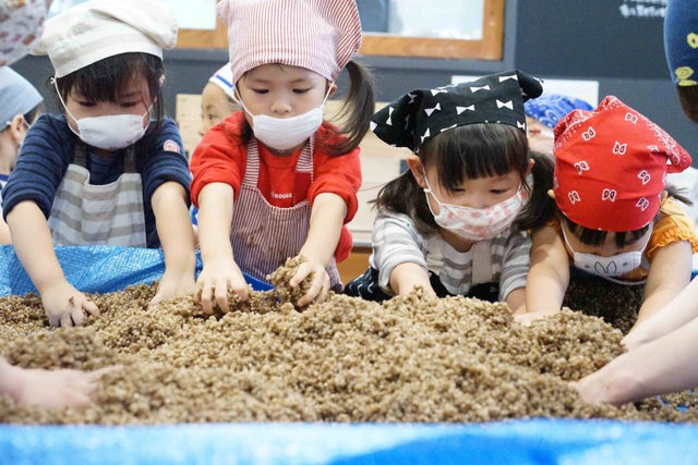 子どもたちの「おいしい」と、日本の食の未来を守るために、園内での食育活動だけでなく、主に鹿児島県内の農家さんたちと協力しながら、地域内の自給率を上げるための活動や、味噌や梅干し、郷土料理など鹿児島の食を次世代に引き継ぐためのワークショップ、総菜店などの運営、米作り(ひより保育園と共同)などを行っています。