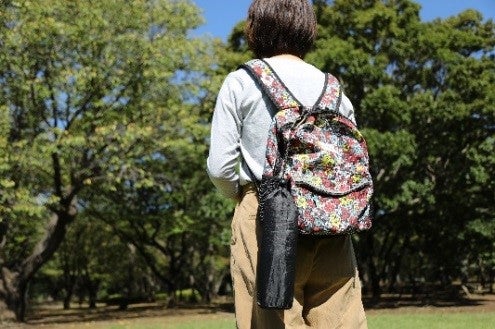 (軽量コンパクト。リュックサックにぶら下げたり、バッグにすっぽり収めたりできます)
