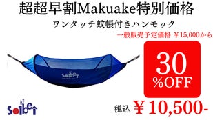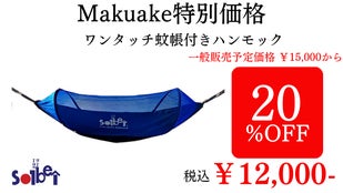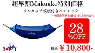 「Makuake(マクアケ)」は、実行者の想いを応援購入によって実現するアタラシイものやサービスのプラットフォームです。このページは、 プロダクトカテゴリの 「職人歴32年のアウトドアメーカーが贈る、超軽量「ワンタッチ蚊帳付きハンモック」」プロジェクト詳細ページです。