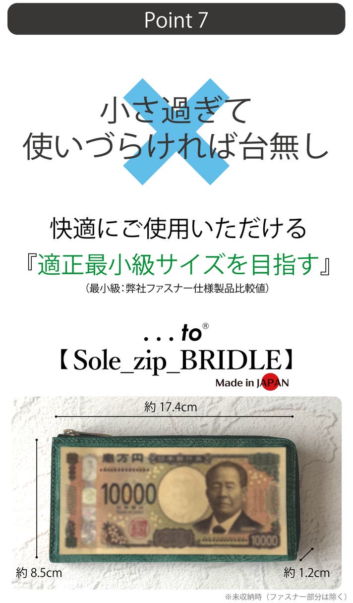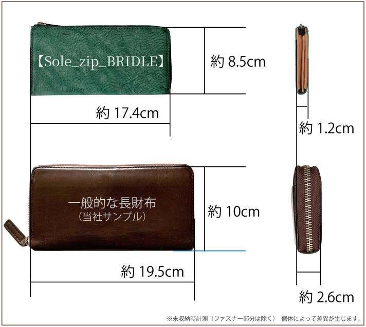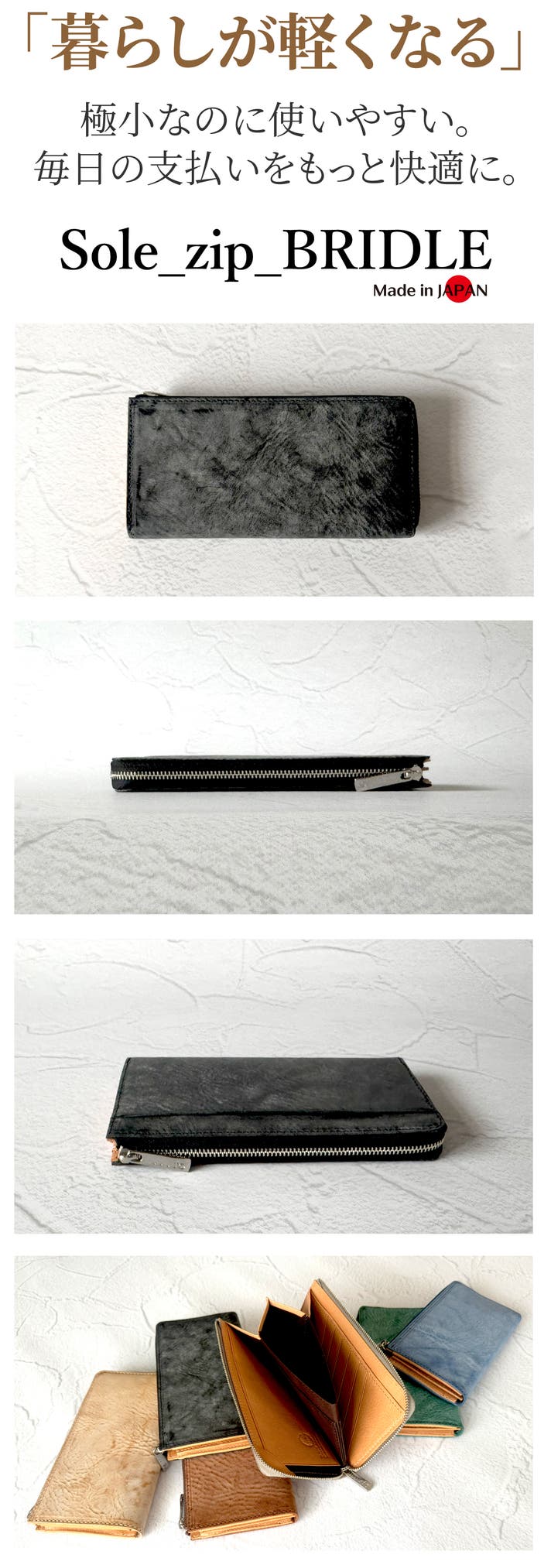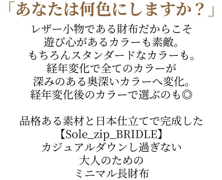キャッシュレス時代に対応し、「今」何を求められているかを追求して完成した極小長財布【Sole_zip_BRIDLE】を自信を持ってオススメします。