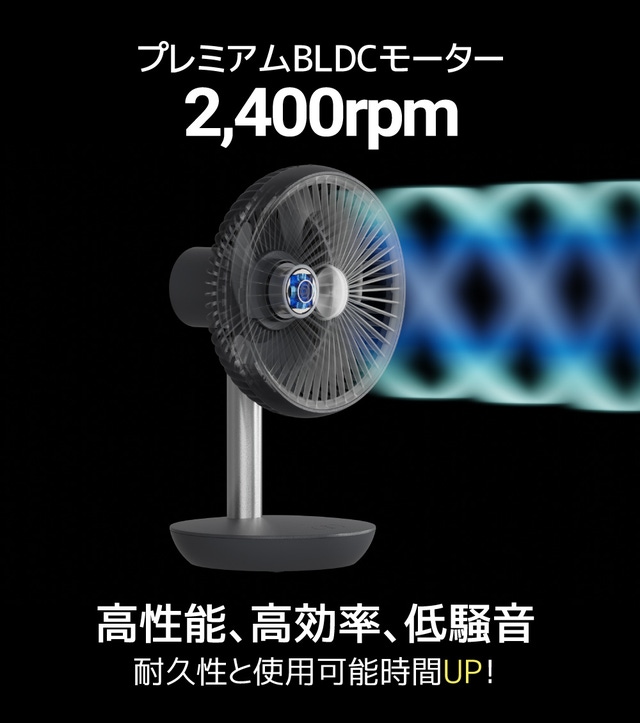 - BLDCモーターで優れた耐久性!急速充電対応!5枚羽でより柔らかい風を感じられる!