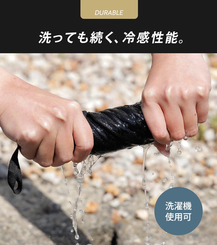 - “冷感-15度がずっと続く” 吸熱×冷感のW効果素材。水に濡らしてひんやりが続く夏の救世主!