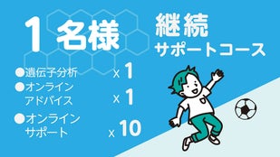 遺伝子分析の結果をもとに理学療法士(日本スポーツ協会公認アスレティックトレーナー) x公認スポーツ栄養士の専門家がそれぞれ20分のアドバイスをオンラインで行うまでをセットにした「ベーシックコース」。そこから、生まれ持った遺伝子による各々の体質を知ったうえで、専門家による栄養プログラム、トレーニングプランを10回にわたって行う「継続サポートコース」を選べます。