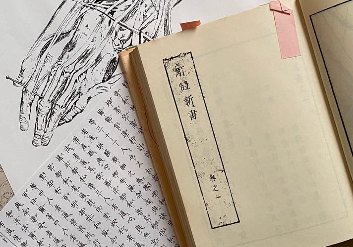 『解体新書』・・・版心書題の「解体新書」の文字は杉田玄白の直筆文字の写しを使用。最初のページに原書「ターヘルアナトミア」の表紙画像を盛り込む。