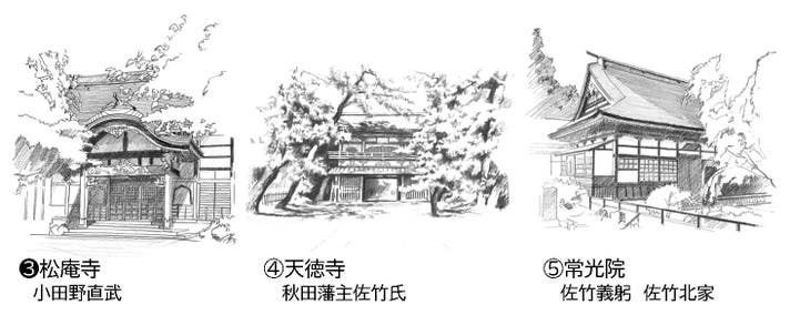 ★各御朱印帳のテーマにおいてキーとなる人物の菩提寺について、実際にその寺院に足を運んで写真を撮影し、その写真を元に御朱印帳のテイストに合わせたデッサン画を敢えて描きました。