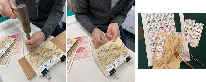 1.版画用和紙や特殊紙を内容ごとに使い分け、御朱印用ページには版心を設けて和書の代表的な綴じ方である袋綴じとし、手作業で和綴じ