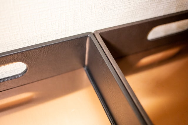 そこで、研究結果から抗菌効果が認められている「銅」に注目し、玄関のインテリアとしても置いていてもおしゃれな【レザー】×【純銅】を贅沢に使用した「シューズトレイ」を製作いたしました。
