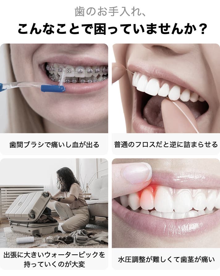 毎日の水流フロスが、健やかな口腔環境づくりをサポートします。歯ぐきにやさしい、心地よいケアが可能です。