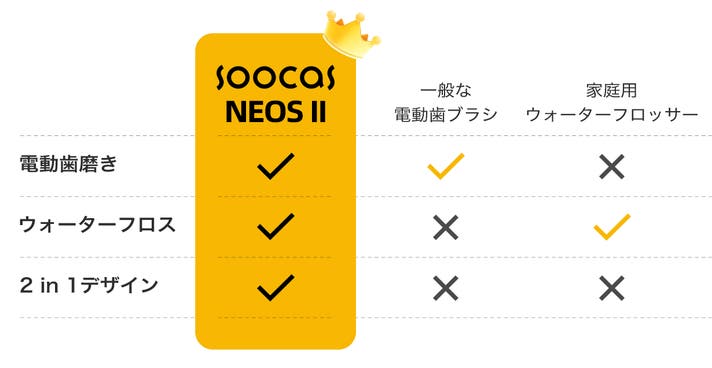水フロス付きのSoocas NEOS IIでの定期的なケアが、お口の環境と家計にゆとりをもたらす。