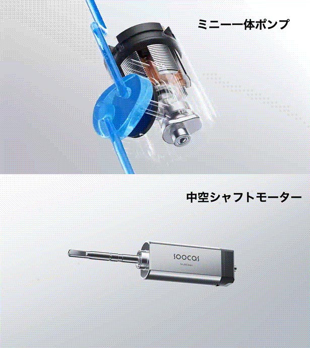 当社独自の特許取得技術であるミニー一体型ポンプと、精密加工された2.2mm中空シャフトの最適化設計により、自社従来のウォーターピックを遥かに超えるなめらかで安定した水流を実現!