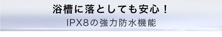 一般的な電動歯ブラシ(IPX7基準)を超えるIPX8防水性能を搭載。シャワーの水しぶきや浴槽への落下など、日常的な水濡れシチュエーションでも問題なく使用できます。入浴中のリラックスタイムでも、プロ並みのオーラルケアを毎日の習慣に取り入れられます。