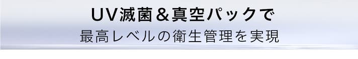 すべてのブラシヘッドは、UVライトにより徹底的な除菌処理を行っています。真空パック・無菌環境で丁寧に包装しているので、新しいブラシを開封するごとに、プレミアム級の衛生と安全性を実現しています。