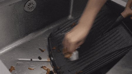 調理後、表面にくっ付いた食べカスが落ちやすいので皿洗いが楽になります。 お湯とキッチン用洗剤でささっと洗浄できます。