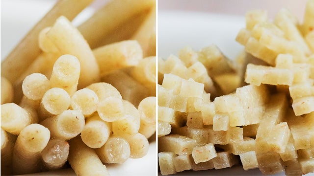 SOPPAは丸く、蕎麦は四角い形状の麺になっています。十割蕎麦の風味と食感に加え、パスタの滑らかさやもっちりとした食感も併せ持つ、和洋どんなソースとも相性の良い麺になりました。