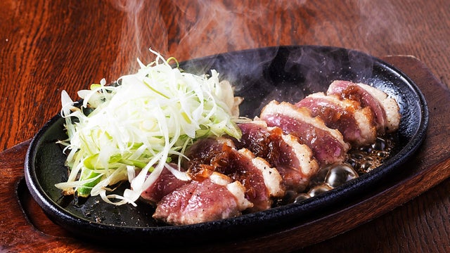 お店でも人気の鴨テツ(鴨ステーキ)は、希少な青森県産鴨肉(和ガモ)を