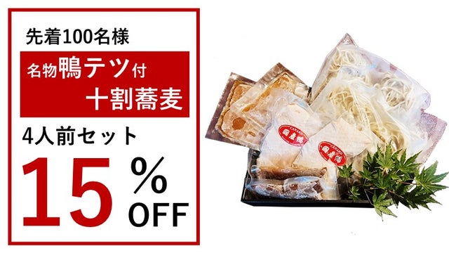 【鴨テツ付き十割蕎麦】×4人前15%オフ
