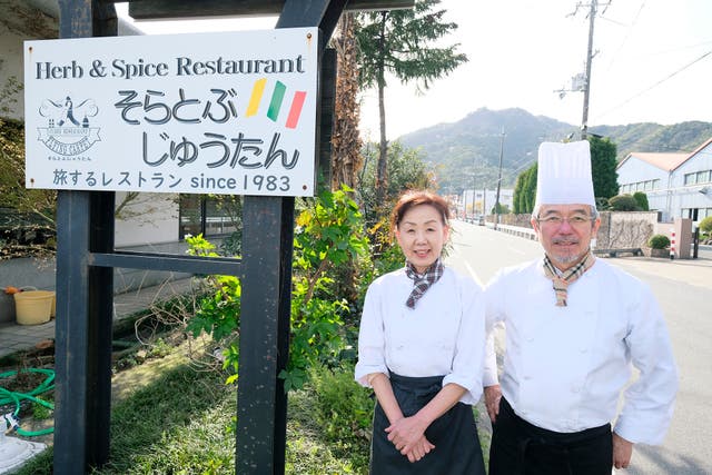 兵庫県の中部、西脇市というところにある「そらとぶじゅうたん」というレストランのオーナー・シェフ、岸田武志と申します。