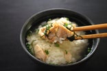 この道一筋50年以上、京都嵐山にある大河内山荘庭園で懐石料理を学んだベテランシェフが作る、おだしからとことんこだわった鮭茶漬けです。