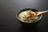 炊きたてがベストですが、昨日炊いたご飯、冷凍していたご飯でも、それほど味は落ちません。なんと言っても出汁が味わいを担保してくれます。