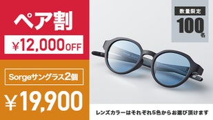「Sorgeサングラス」 一般販売予定価格31,900円(税・送料込み)のところ100組限定で12,000円OFFの19,900円にてお届けします。