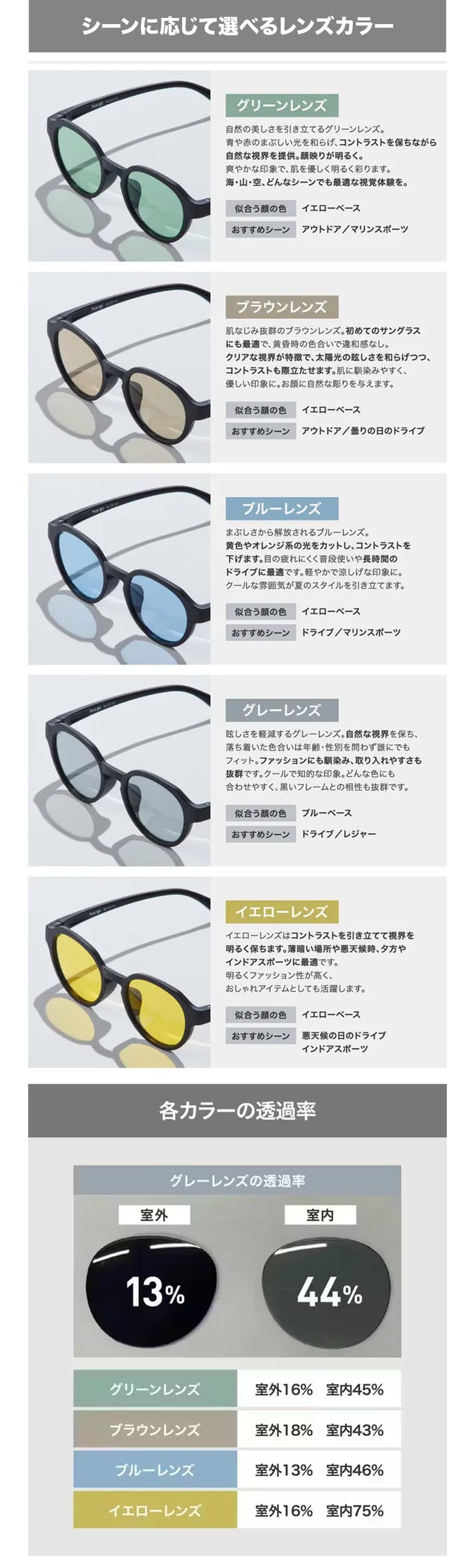 レンズカラー:クリアグレー/イエロー/グリーン/ブルー/ブラウン