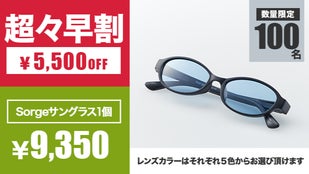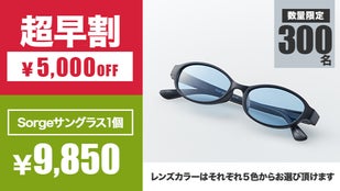 「Sorgeサングラス」 一般販売予定価格14,850円(税・送料込み)のところ300名様限定で5,000円OFFの9,850円にてお届けします。