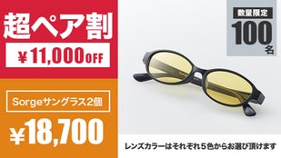 「Sorgeサングラス」 一般販売予定価格29,7000円(税・送料込み)のところ100名様限定で11,000円OFFの18,700円にてお届けします。