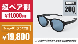 「Sorgeサングラス」 一般販売予定価格15,400円(税・送料込み)のところ300名様限定で5,500円OFFの9,800円にてお届けします。