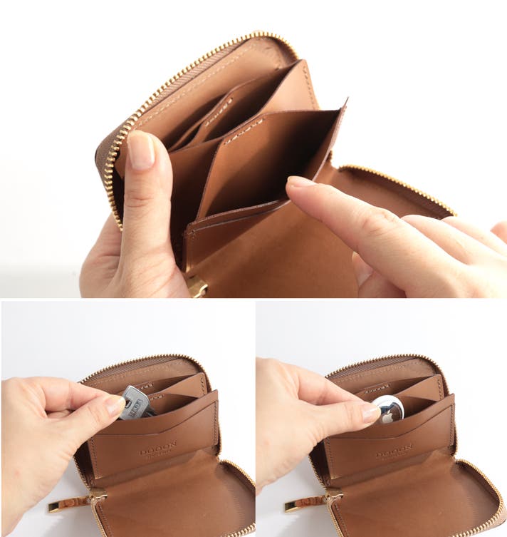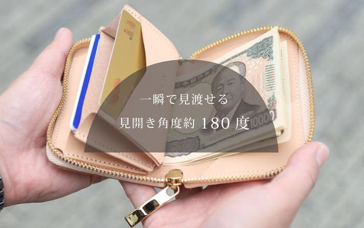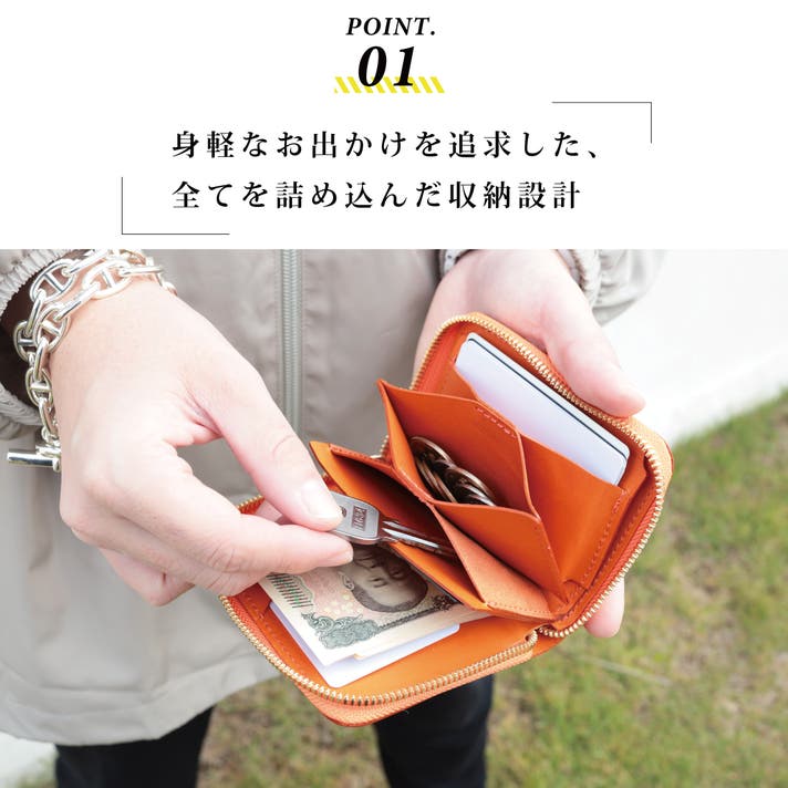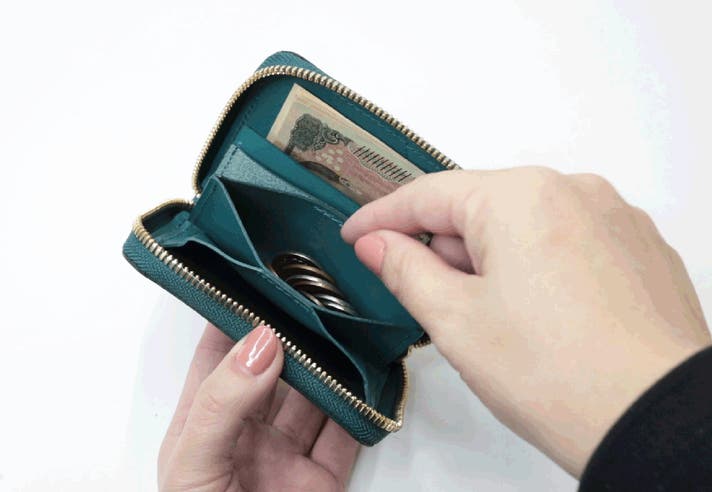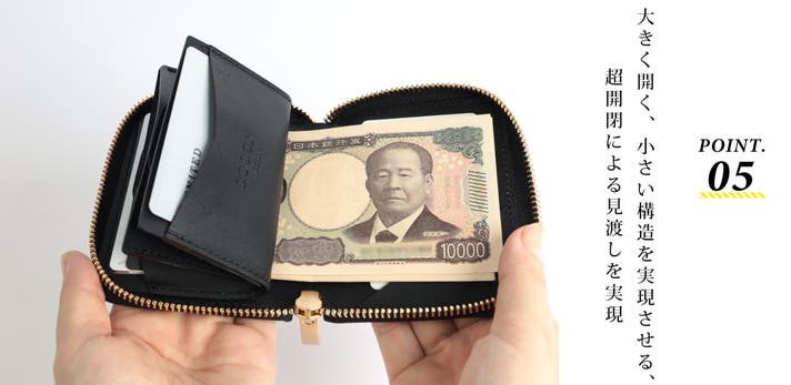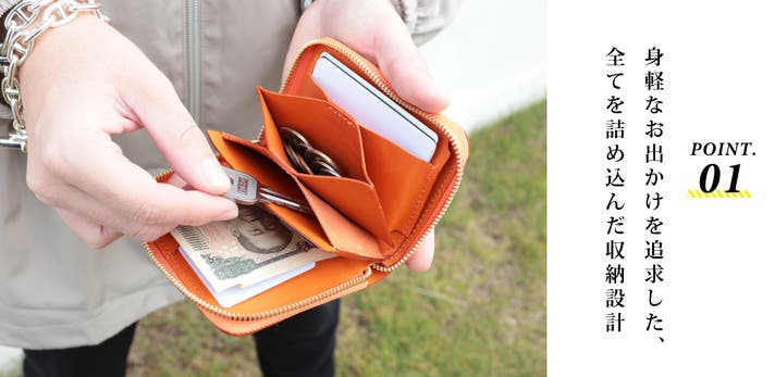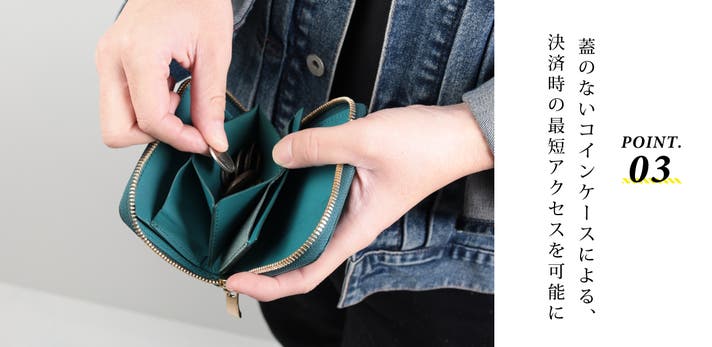 ファスナーの開口と同時に小銭箇所を見渡し、瞬時に取り出しを可能とするスマートな会計へと特化するために