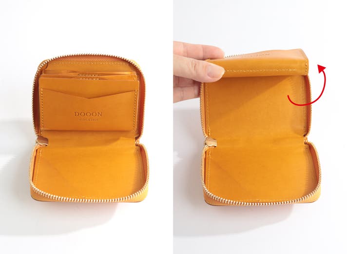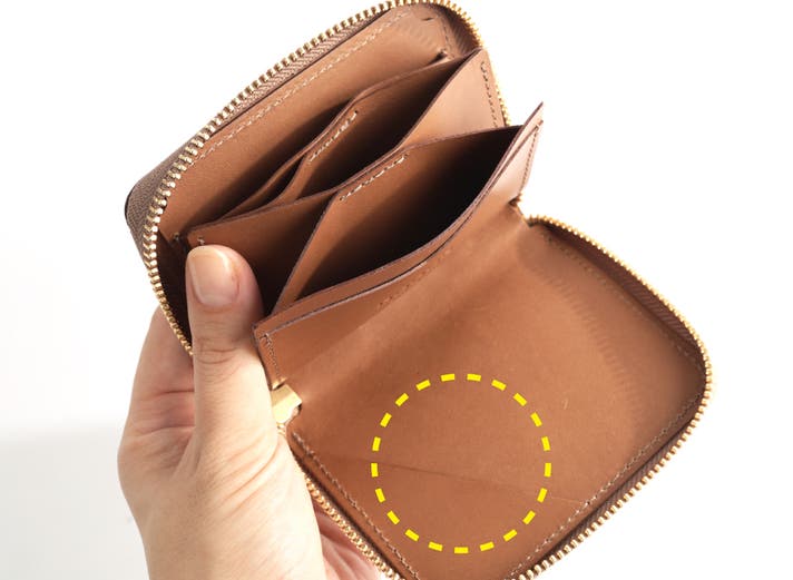 ⇒製法上/お財布を仕立てる際に生じるスペースも、新しい収納スペースへと変化