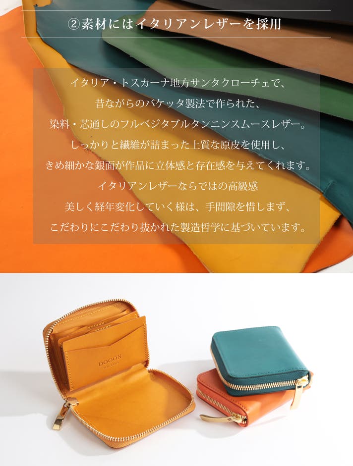イタリアンレザーならではの高級感と、美しく経年変化していく様は、手間隙を惜しまず、こだわりに、こだわり抜かれた製造哲学に基づいています。